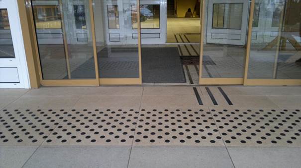 37. Az iskola főbejárata / a portai helyiség előtti taktilis vezetősáv