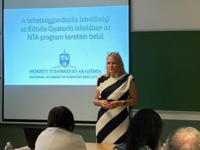 Spákné Paráda Andrea előadásának címe: Tehetséggondozás lehetőségei a Nemzeti Tudósképző Akadémia programjában.