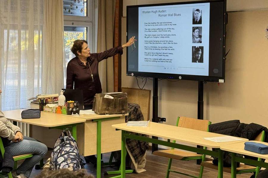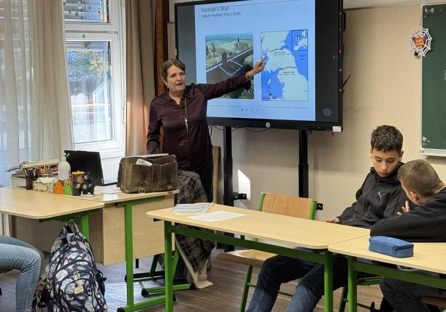 A Nyíregyházi Egyetem tanszékvezető tanára, Dr. Ajtay-Horváth Magda tartott rendkívüli angolórát 9.-es diákok számára az Eötvös Gyakorlóiskolában október 20-án. Tanárnő „Contexts challenged by poetry” című foglalkozása során tanulóink betekintést nyerhettek az egyetemi angolórák hangulatába. Tanulóink közül többen anyanyelvi, illetve felsőfokú szinten beszélik az angol nyelvet, így a hagyományos nyelvoktatás során a nyelvórákba számos tehetségfejlesztő, különleges foglalkozást szerveznek iskolánk pedagógusai. Iskolánk tehetséggondozó programjai és az angol tagozaton végzett eredményes munka sok éve teszi vonzóvá a felvételizők számára az Eötvös Gyakorlóiskolát.