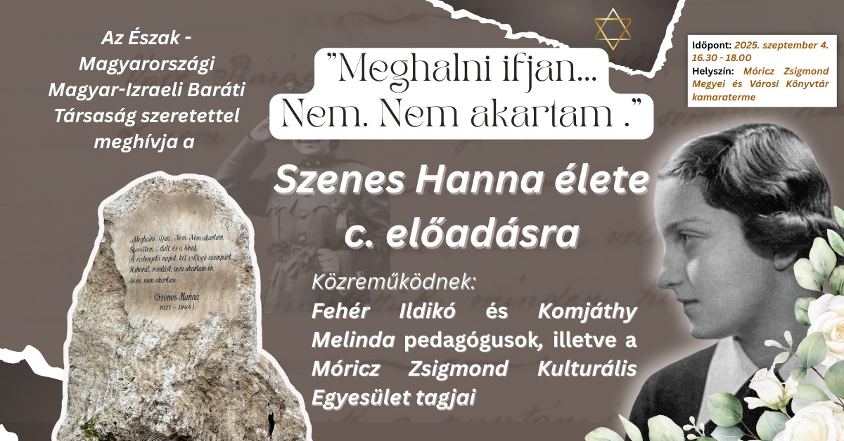 "Meghalni ifjan… Nem. Nem akartam. "- Szenes Hanna élete c. előadás