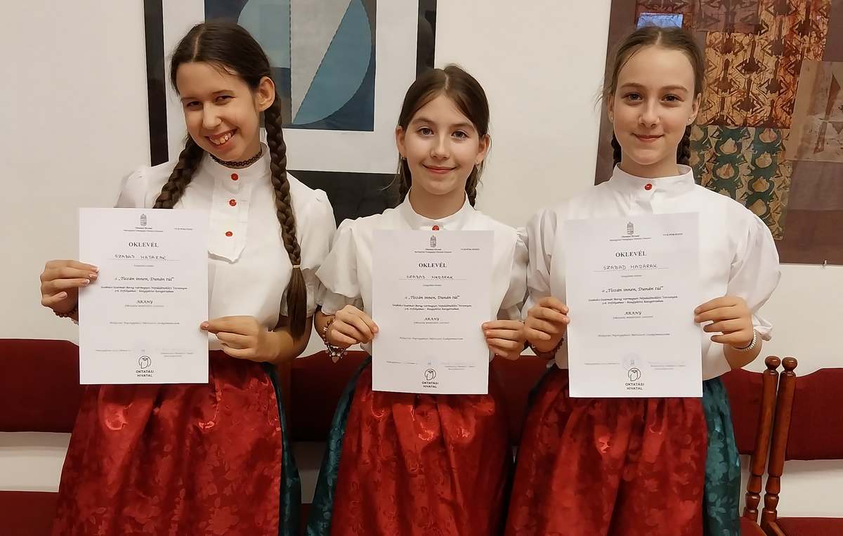 - Lipécz Viktória 9.a osztályos tanulónk szólóénekét szintén kiemelt arany minősítéssel jutalmazta a zsűri, így ő is az országos döntőbe jutott. Felkészítő tanára: Molnár Ágnes. Az országos népdaléneklési verseny 2025. május 11-én lesz Budapesten.